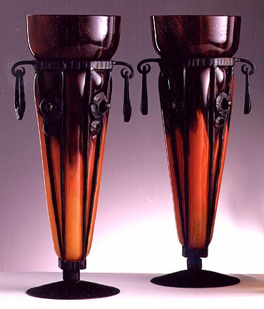 vases in a wrought iron mounting France 1925-30 Both signed Schneider Dimensions: diameter cm. 11, height cm. 33,5 |