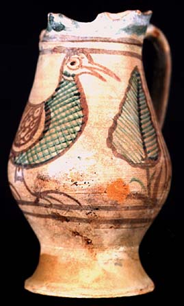 and lanceolate leaf" Origin and date: Siena, second half of the XIV century Dimensions: height cm. 18 Preservation: I / IV (Hind, 66) The cup presents wantage on the neck area Similar exemplars are printed on: "L'Arte della Maiolica in Italia" by Giovanni Conti (Bramante Editrice, 1980) n. 17, 20 and on "Storia della Maiolica di Firenze e del contado" by G. Cora (Firenze 1968) |