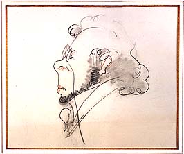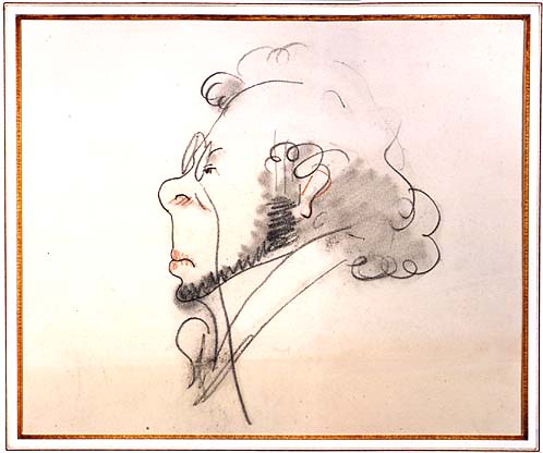 vista di profilo" Misure: 22 x 27 cm. (40 x 46 cm. compresa la cornice dorata e intagliata) Il disegno recava un'attribuzione a Eugène Lami (Parigi 1800-1890) |