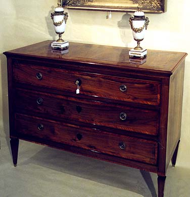 and marquetries of Neoclassic period Tuscany 1780 Dimensions: cm. 120 x 45, h. cm. 90 White marble vases with gilded bronze finishings Dimensions: h. cm. 36 |