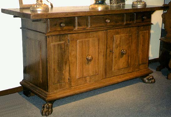 Credenza in massello di noce. Bologna fine 500 inizi 600. H. 103 cm. / Largh. 188 cm. / Prof. 75 cm. |