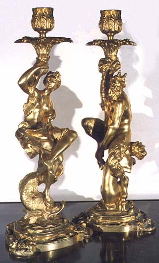 finemente cesellati raffiguranti Sammo e Ninfa, con animali Epoca: XIX secolo Dimensioni: h. 35 cm. |