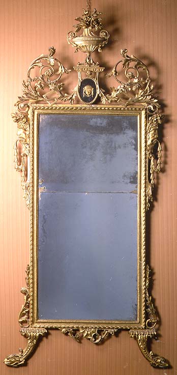 neoclassici. Cimasa decorata al centro da medaglione con testa dorata su fondo nero e sormontata da vasetto biansato con mazzo di fiori e foglie. Firenze ultimo quarto XVIII sec. Misure: cm. 98 x h. cm. 213. |