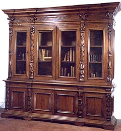 decorated by carved pilaster strips. Tuscany, half of the XVII century. Dimensions: cm. 318,5 x 66 x h. cm. 305. (Very good preservation). |