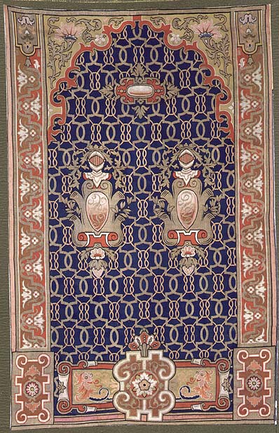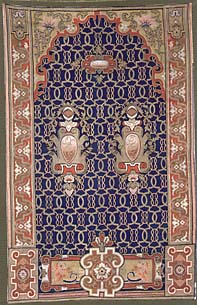 Dimensions: ht. 333 cm., wd. 208 cm., silk, wool and gold thread.. Extremely fine, woven with the addition of silk thread, probably for a marriage. |