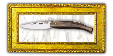 Manico in corno bovino pieno e lucido. Lama in acciaio al carbonio