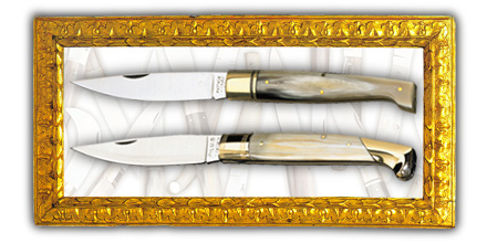 Lama acciaio Inox 420 o al carbonio. Manico in corno lucido o