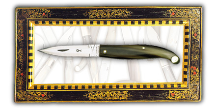 Il manico, in una punta di corno bovino lucido o in legno di bosso,