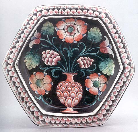 Art. C7 Piatto Esagonale con Fiori. Nero e Rosa. Dim. cm. 50x43 |