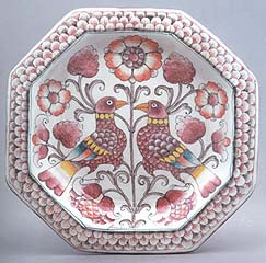 Art. C5 Piatto ottagonale con uccelli e fiori. Bianco e Rosa. Diam. cm. 47 Diam. cm. 42 Diam. cm. 37 Diam. cm. 28 Diam. cm. 23 |