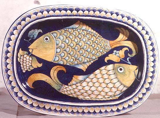 Art. C2 Piatto Grande Rettangolare con Pesci. Fondo Blu Cobalto. Dim. cm. 63x55 Dim. cm. 49x40 Dim. cm. 43x36 Dim. cm. 38x33 Dim. cm. 32x27 Dim. cm. 24x22 |