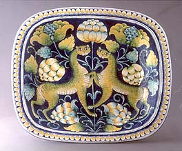 Art. C1 Piatto con Tigri Rettangolare. Fondo Blu Cobalto. Dim. cm. 63x55 |
