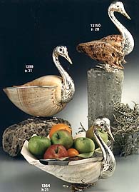1364 - Swan with Tridacna shell. Dimensions: h. cm.21.