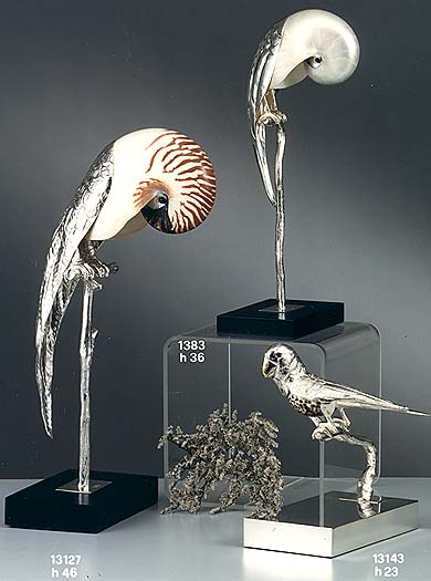 13127 - Parrot with Nautilus shell. Dimensions: h. cm.46.