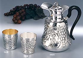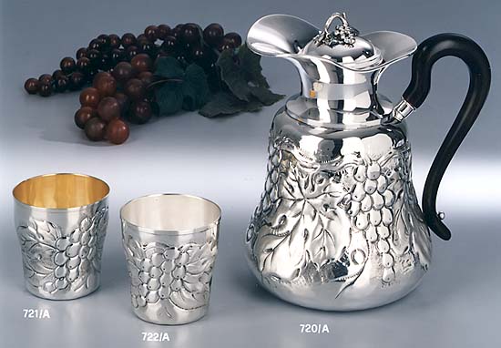Chiselled jug and glasses, hand-made manufacture in 800%o or 925%o silver: