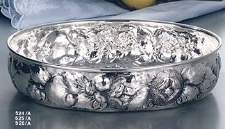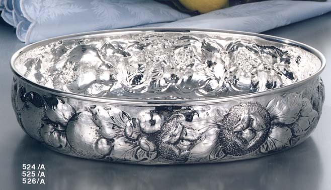 524-525-526/A - Chiselled oval bowl, hand-made manufacture in 800%o or 925%o silver.