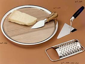 Art. 136 - Plate in 800%o or 925%o silver with chopping board in natural wood (national walnut), diam. cm. 22 - gr. 180.