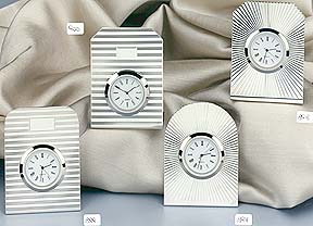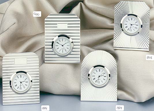 Art. 897 / 898 / 899 / 900 - 800%o or 925%o silver table clocks, quartz movement made in Germany, special motif of horizontal or radial lines, gr. 35 - h. cm. 8.