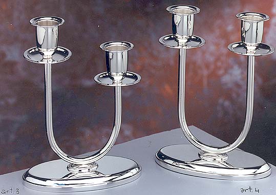 Art. 4 - Two flame candlestick with oval base, h. cm. 17,5 - gr. 195, in 800%o o 925%o silver; this candlestick is similar to the previous one except for the two flames which are on the same level.