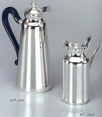 Art. 126 E - Jug with thermic glass container inside entirely 800%o or 925%o silver, capacity 1/8 litre, gr. 250 - h. cm. 18.