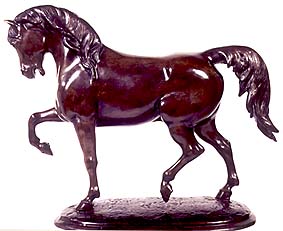 his bronze piece depicting a trotting horse, is signed by the artist Hunt.