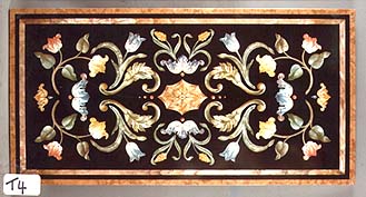 Coming in any sharpe and size the scagliola table tops/wall pannels can be ordered with any design and on various marble backgrounds (beige, white, green, black, dark red etc.).